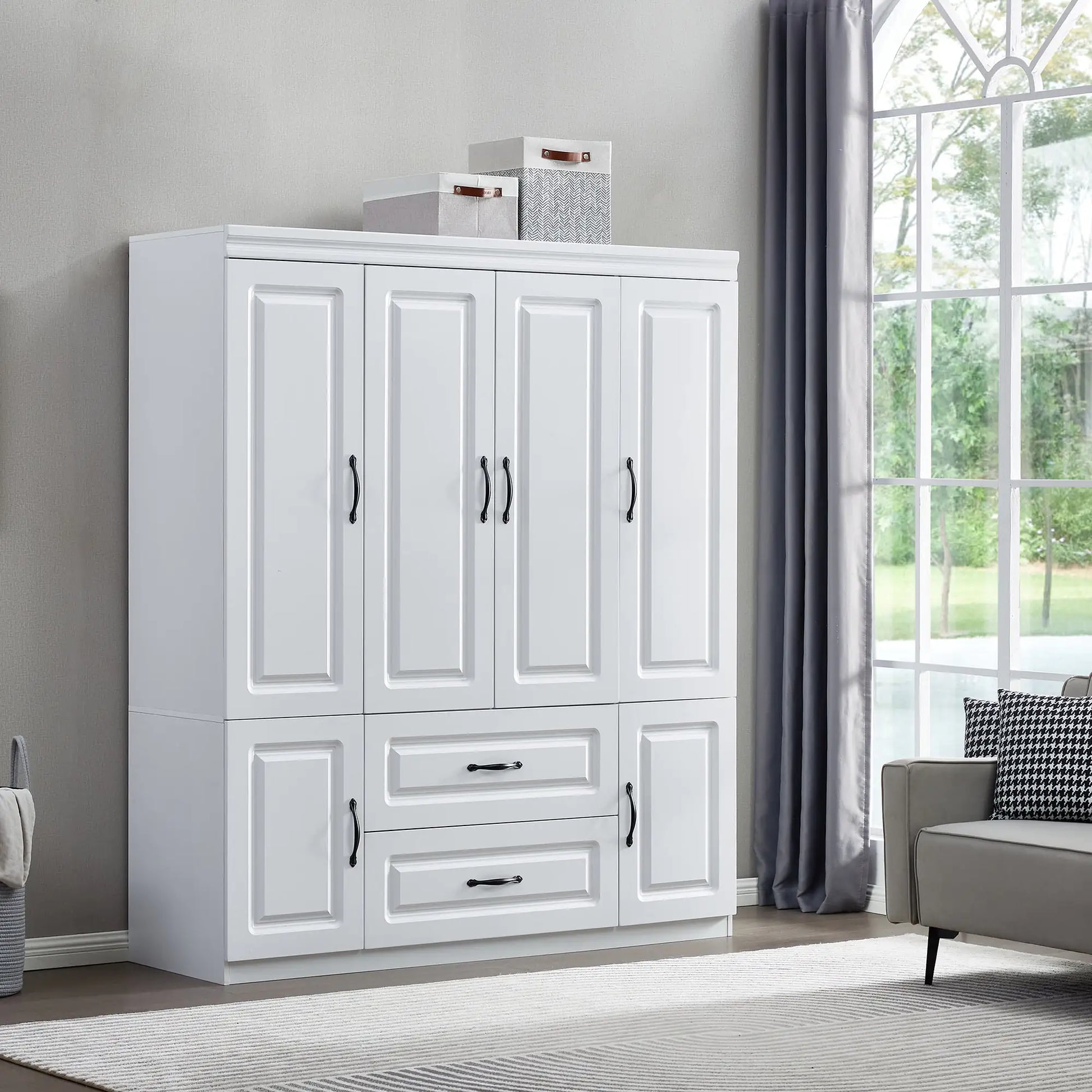 【Modern Design】 - Tall cabinet boasting a classic modern design with an elegant appearance. This armoire storage cabinet brings a touch of sophistication to any bedroom. The large storage cabinet wooden handles, in their original wood color, add a fresh and beautiful accent, enhancing the overall aesthetic